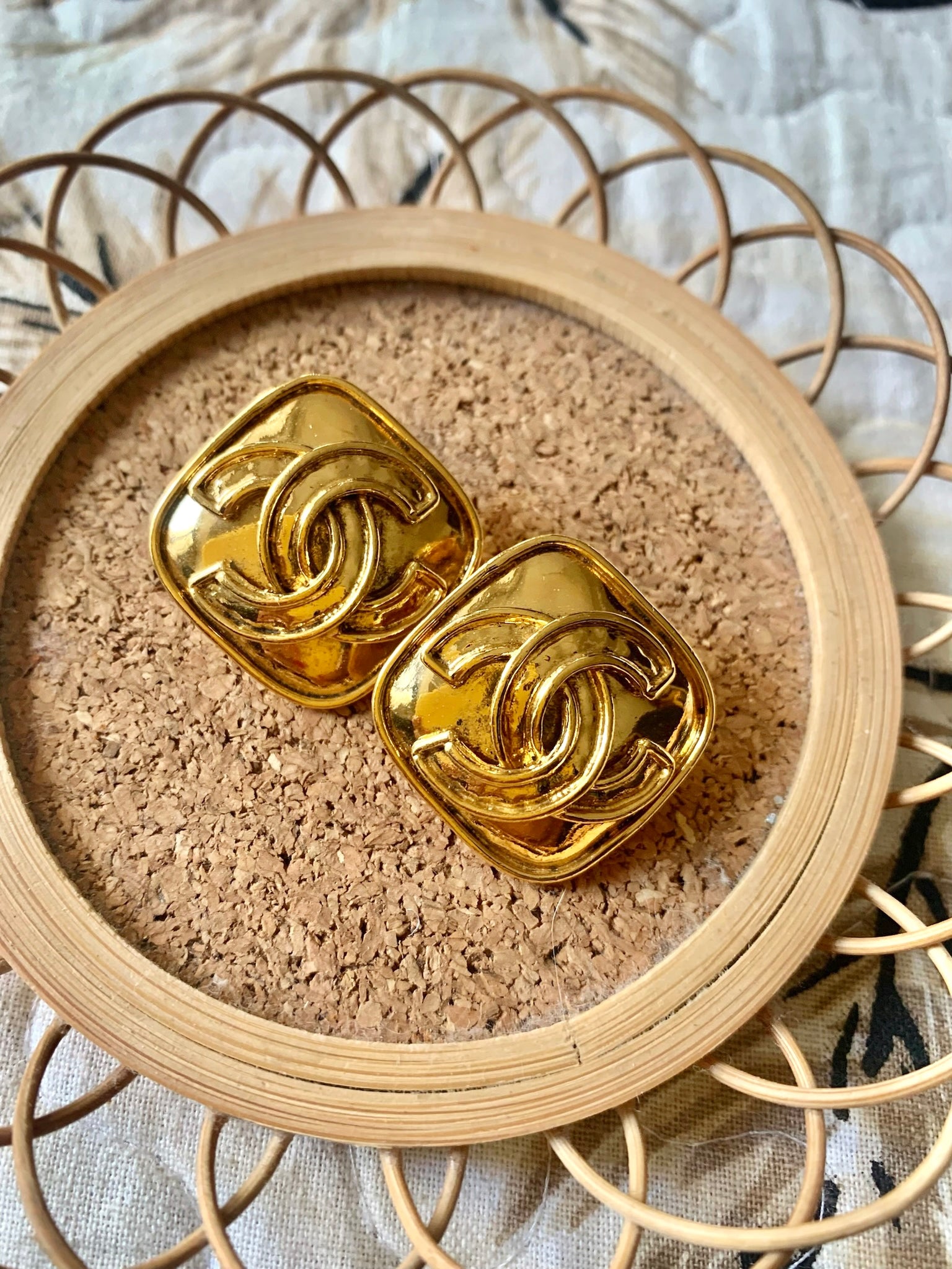 Vintage Chanel Diamond Shaped CC Earrings